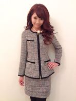 2015春夏最新作! ファンシーツィードが新しい春の訪れにピッタリ洗練されたデザインのジャケットにスッキリとしたミニタイトで女性らしさ溢れるセットです。