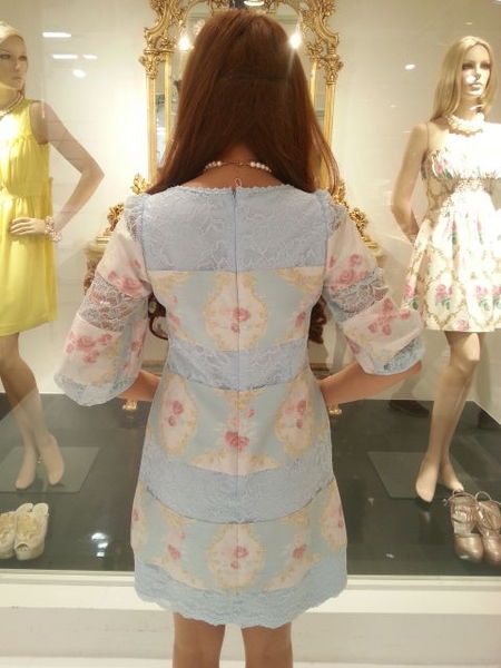 ディアマンテプリントとレースをボーダーに切り替えた、大胆なデザインですが、裏地がしっかりついているので、お上品に着こなせます♪ バロックをモダンに楽しんでくださいね♪