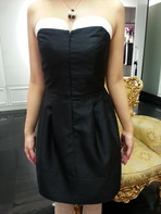 ラインが綺麗なベアワンピ☆バスト部分デザインが可愛くてスカートもふんわりしています♪ ウエスト部分後ろはゴムになっており、前ファスナーになります。 キュッとしたウエストでstyleも良くみえます。