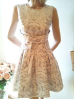 胸元にレースをあしらい、ウエストリボンときれいに広がるタックスカートの絶妙な組み合わせ♡