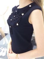 大人気!ロココシリーズ!可愛いニットの登場です♪ レースやパールがネックレスのようなデザインになっていてとっても可愛いです