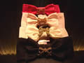 白×黒リボン×クリアストーン、白パール×黒リボン×黒ストーン
